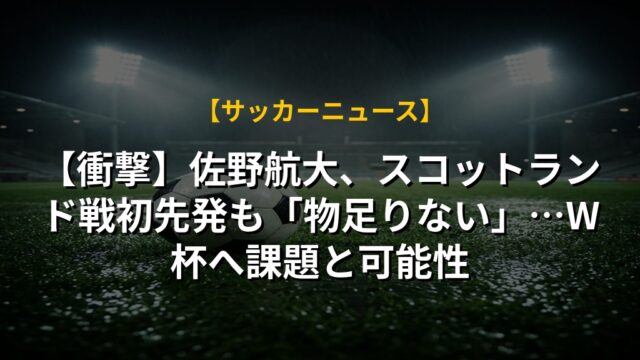【衝撃】佐野航大、スコットランド戦初先発も「物足りない」…W杯へ課題と可能性