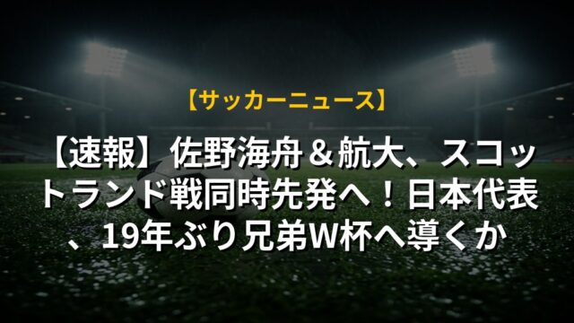【速報】佐野海舟&航大、スコットランド戦同時先発へ!日本代表、19年ぶり兄弟W杯へ導くか