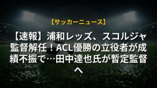 【速報】浦和レッズ、スコルジャ監督解任!ACL優勝の立役者が成績不振で…田中達也氏が暫定監督へ