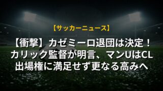 【衝撃】カゼミーロ退団は決定!カリック監督が明言、マンUはCL出場権に満足せず更なる高みへ