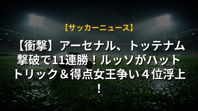 【衝撃】アーセナル、トッテナム撃破で11連勝!ルッソがハットトリック&得点女王争い4位浮上!