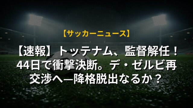 【速報】トッテナム、監督解任!44日で衝撃決断。デ・ゼルビ再交渉へ—降格脱出なるか?
