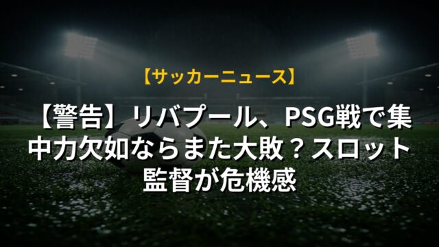 【警告】リバプール、PSG戦で集中力欠如ならまた大敗?スロット監督が危機感