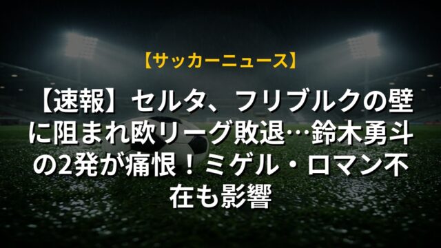 【速報】セルタ、フリブルクの壁に阻まれ欧リーグ敗退…鈴木勇斗の2発が痛恨!ミゲル・ロマン不在も影響