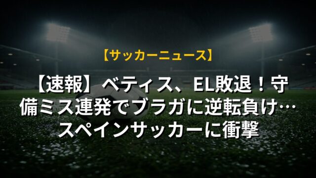 【速報】ベティス、EL敗退!守備ミス連発でブラガに逆転負け…スペインサッカーに衝撃