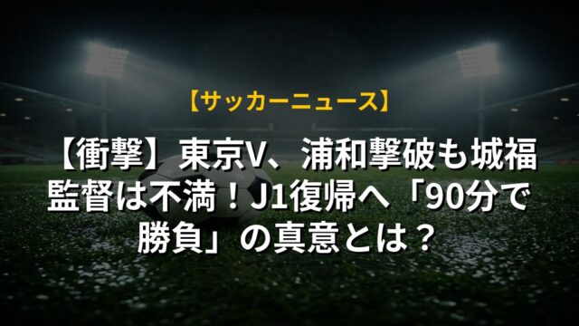 【衝撃】東京V、浦和撃破も城福監督は不満!J1復帰へ「90分で勝負」の真意とは?