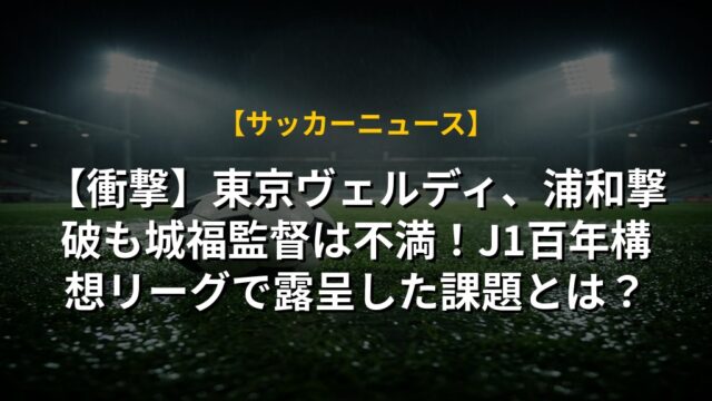 【衝撃】東京ヴェルディ、浦和撃破も城福監督は不満!J1百年構想リーグで露呈した課題とは?