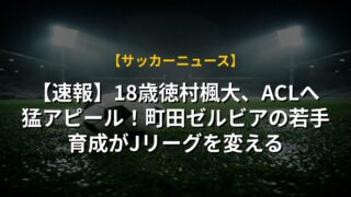 【速報】18歳徳村楓大、ACLへ猛アピール!町田ゼルビアの若手育成がJリーグを変える