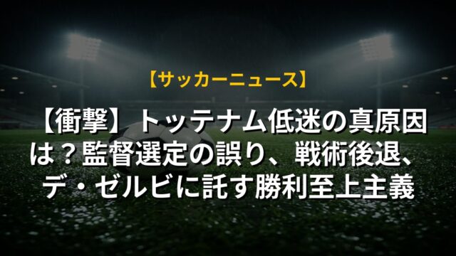 【衝撃】トッテナム低迷の真原因は?監督選定の誤り、戦術後退、デ・ゼルビに託す勝利至上主義