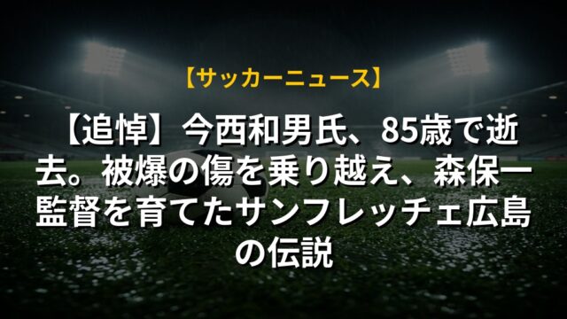 【追悼】今西和男氏、85歳で逝去。被爆の傷を乗り越え、森保一監督を育てたサンフレッチェ広島の伝説