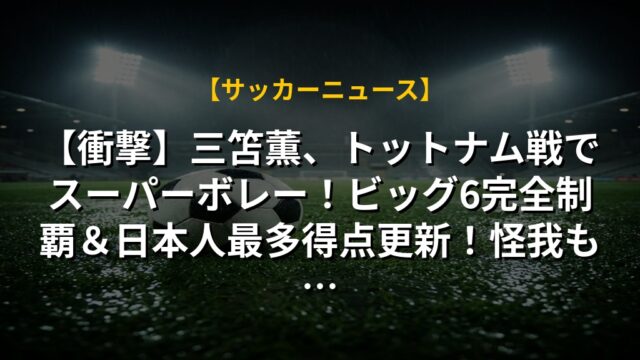 【衝撃】三笘薫、トットナム戦でスーパーボレー!ビッグ6完全制覇&日本人最多得点更新!怪我も…