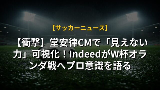 【衝撃】堂安律CMで「見えない力」可視化!IndeedがW杯オランダ戦へプロ意識を語る