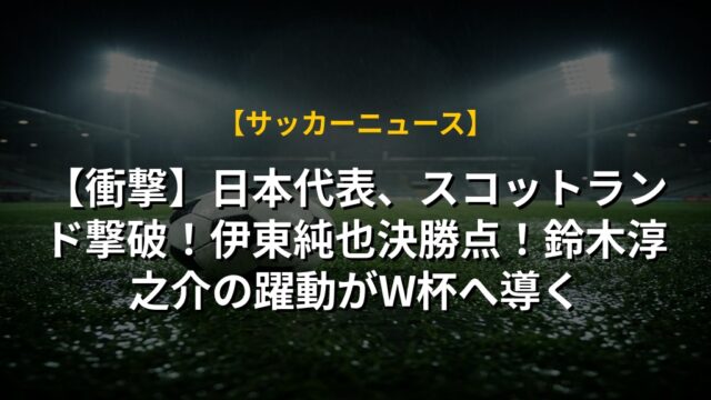 【衝撃】日本代表、スコットランド撃破!伊東純也決勝点!鈴木淳之介の躍動がW杯へ導く