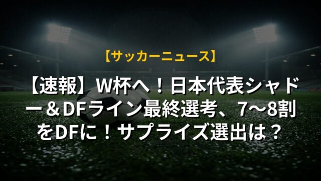 【速報】W杯へ!日本代表シャドー&DFライン最終選考、7~8割をDFに!サプライズ選出は?