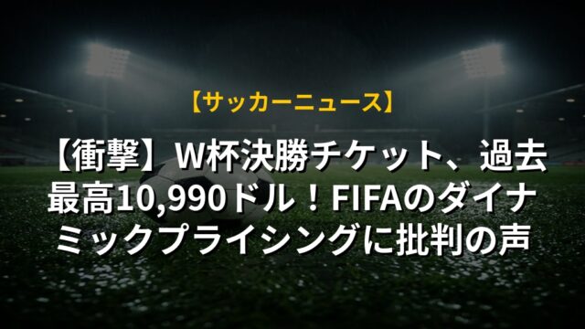 【衝撃】W杯決勝チケット、過去最高10,990ドル!FIFAのダイナミックプライシングに批判の声