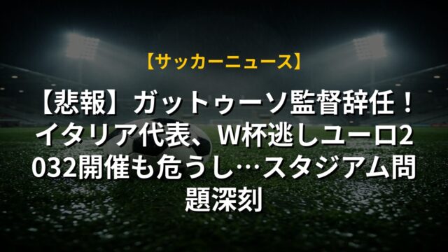 【悲報】ガットゥーソ監督辞任!イタリア代表、W杯逃しユーロ2032開催も危うし…スタジアム問題深刻