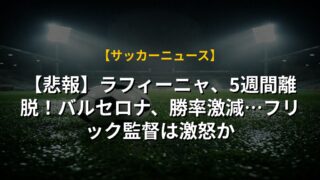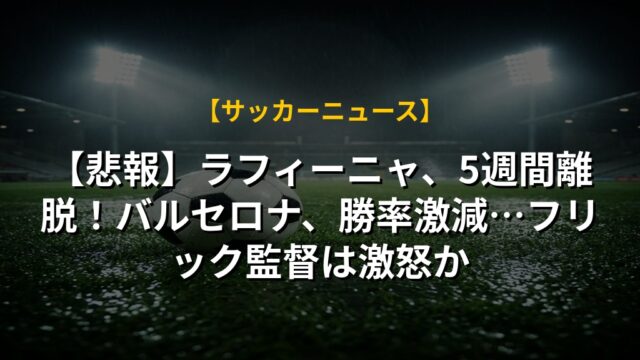 【悲報】ラフィーニャ、5週間離脱!バルセロナ、勝率激減…フリック監督は激怒か