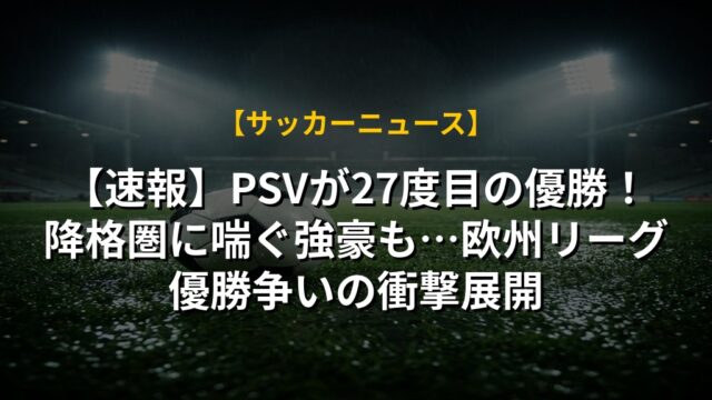 【速報】PSVが27度目の優勝!降格圏に喘ぐ強豪も…欧州リーグ優勝争いの衝撃展開