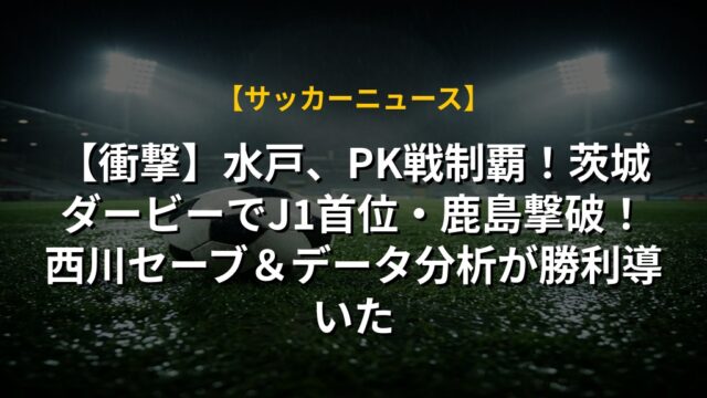 【衝撃】水戸、PK戦制覇!茨城ダービーでJ1首位・鹿島撃破!西川セーブ&データ分析が勝利導いた