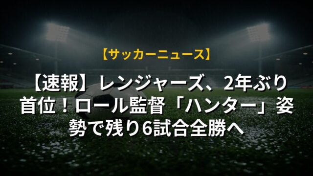【速報】レンジャーズ、2年ぶり首位!ロール監督「ハンター」姿勢で残り6試合全勝へ