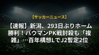 【速報】新潟、293日ぶりホーム勝利!バウマンPK戦封殺も「複雑」…百年構想LでJ2暫定2位