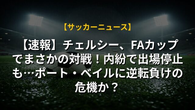 【速報】チェルシー、FAカップでまさかの対戦!内紛で出場停止も…ポート・ベイルに逆転負けの危機か?