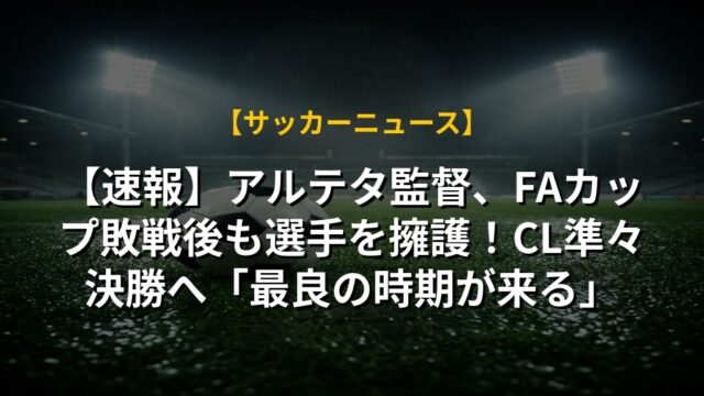 【速報】アルテタ監督、FAカップ敗戦後も選手を擁護!CL準々決勝へ「最良の時期が来る」