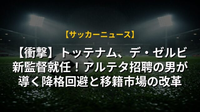 【衝撃】トッテナム、デ・ゼルビ新監督就任!アルテタ招聘の男が導く降格回避と移籍市場の改革