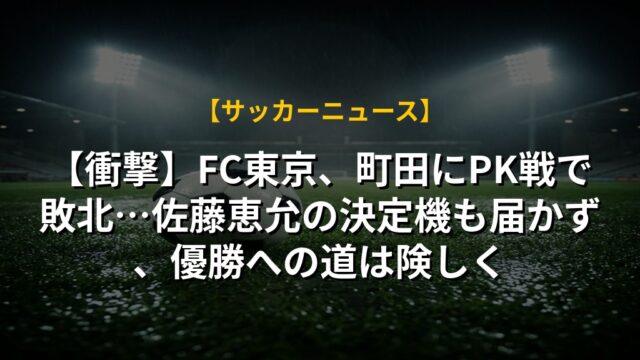 【衝撃】FC東京、町田にPK戦で敗北…佐藤恵允の決定機も届かず、優勝への道は険しく