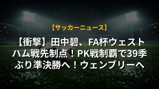【衝撃】田中碧、FA杯ウェストハム戦先制点!PK戦制覇で39季ぶり準決勝へ!ウェンブリーへ