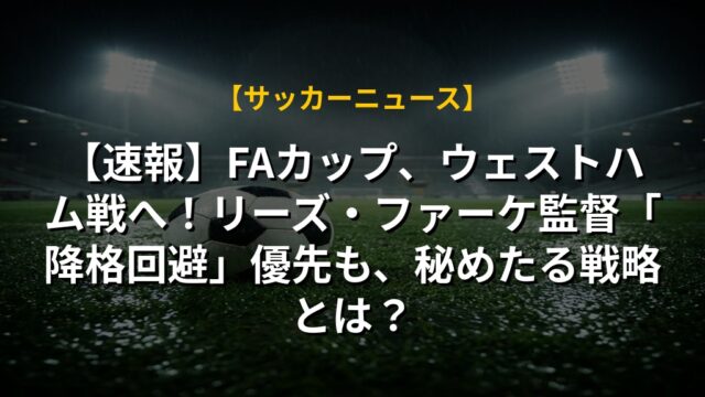 【速報】FAカップ、ウェストハム戦へ!リーズ・ファーケ監督「降格回避」優先も、秘めたる戦略とは?