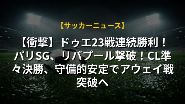 【衝撃】ドゥエ23戦連続勝利!パリSG、リバプール撃破!CL準々決勝、守備的安定でアウェイ戦突破へ