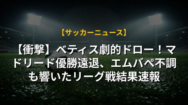 【衝撃】ベティス劇的ドロー!マドリード優勝遠退、エムバペ不調も響いたリーグ戦結果速報