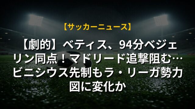 【劇的】ベティス、94分ベジェリン同点!マドリード追撃阻む…ビニシウス先制もラ・リーガ勢力図に変化か