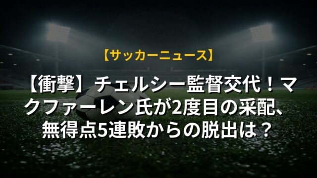 【衝撃】チェルシー監督交代!マクファーレン氏が2度目の采配、無得点5連敗からの脱出は?