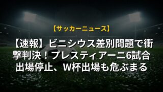 【速報】ビニシウス差別問題で衝撃判決!プレスティアーニ6試合出場停止、W杯出場も危ぶまる