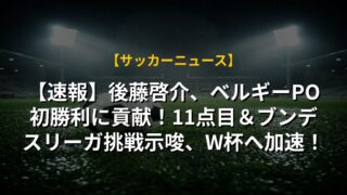 【速報】後藤啓介、ベルギーPO初勝利に貢献!11点目&ブンデスリーガ挑戦示唆、W杯へ加速!