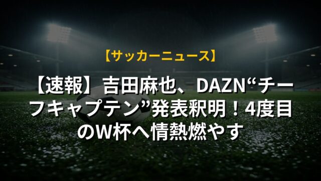 【速報】吉田麻也、DAZN“チーフキャプテン”発表釈明!4度目のW杯へ情熱燃やす