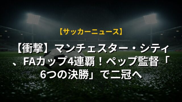 【衝撃】マンチェスター・シティ、FAカップ4連覇!ペップ監督「6つの決勝」で二冠へ